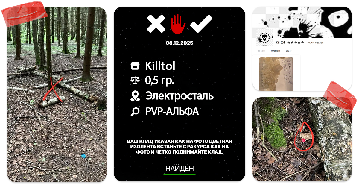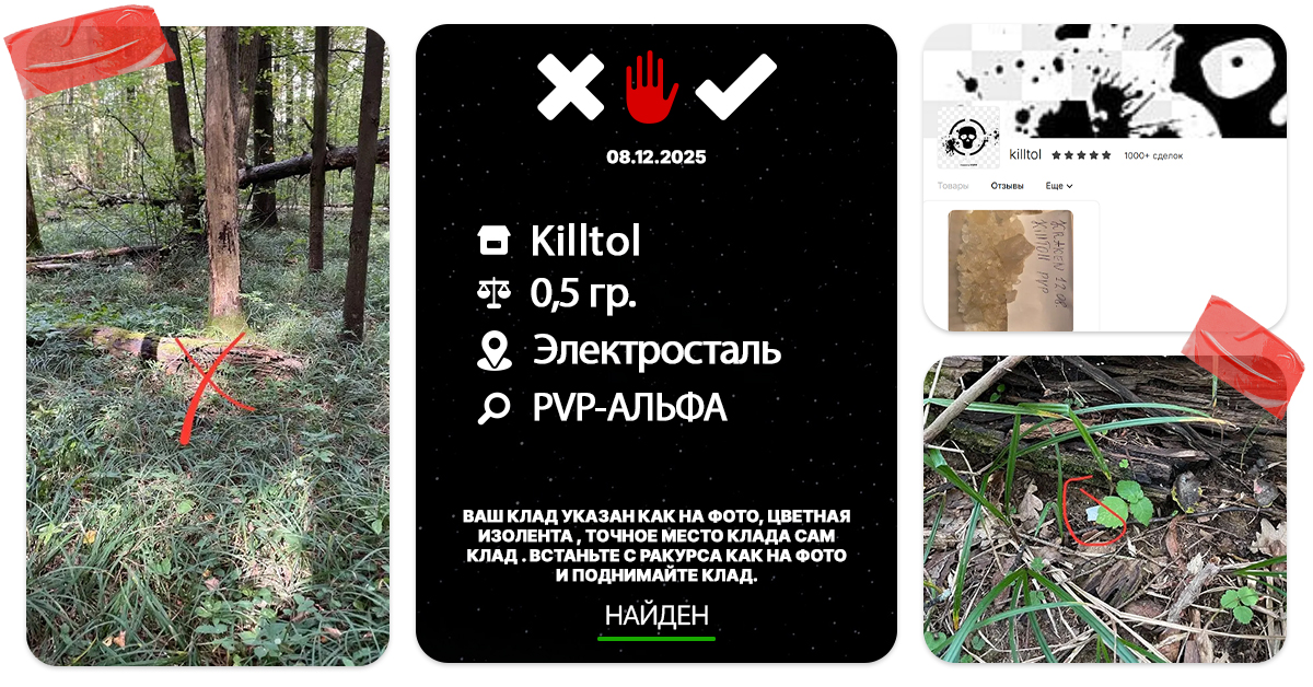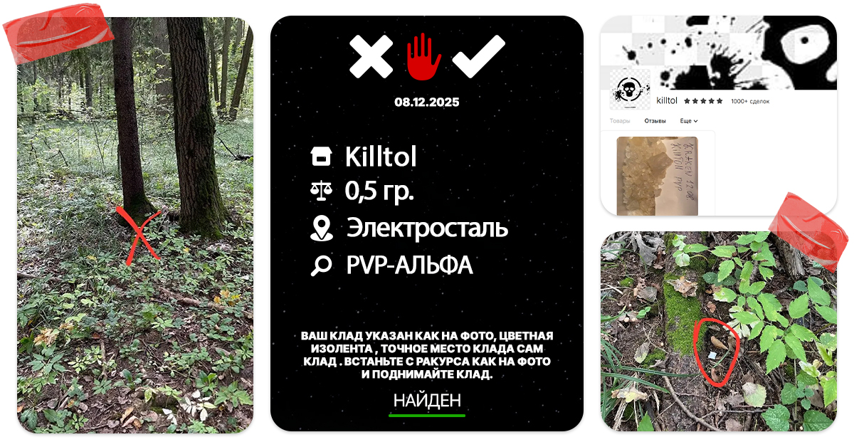 Результат проверки: По результатам контрольной закупки в магазине «killtol» из 5-и адресов было найдено 5-ь. По всем найденным адресам недовес от 8 до 14 %. По недовесам магазин идёт навстречу. Визуальные характеристики товара соответствуют заявленным на витрине. Качество работы курьера/оформление квеста оценивается на 8/10.